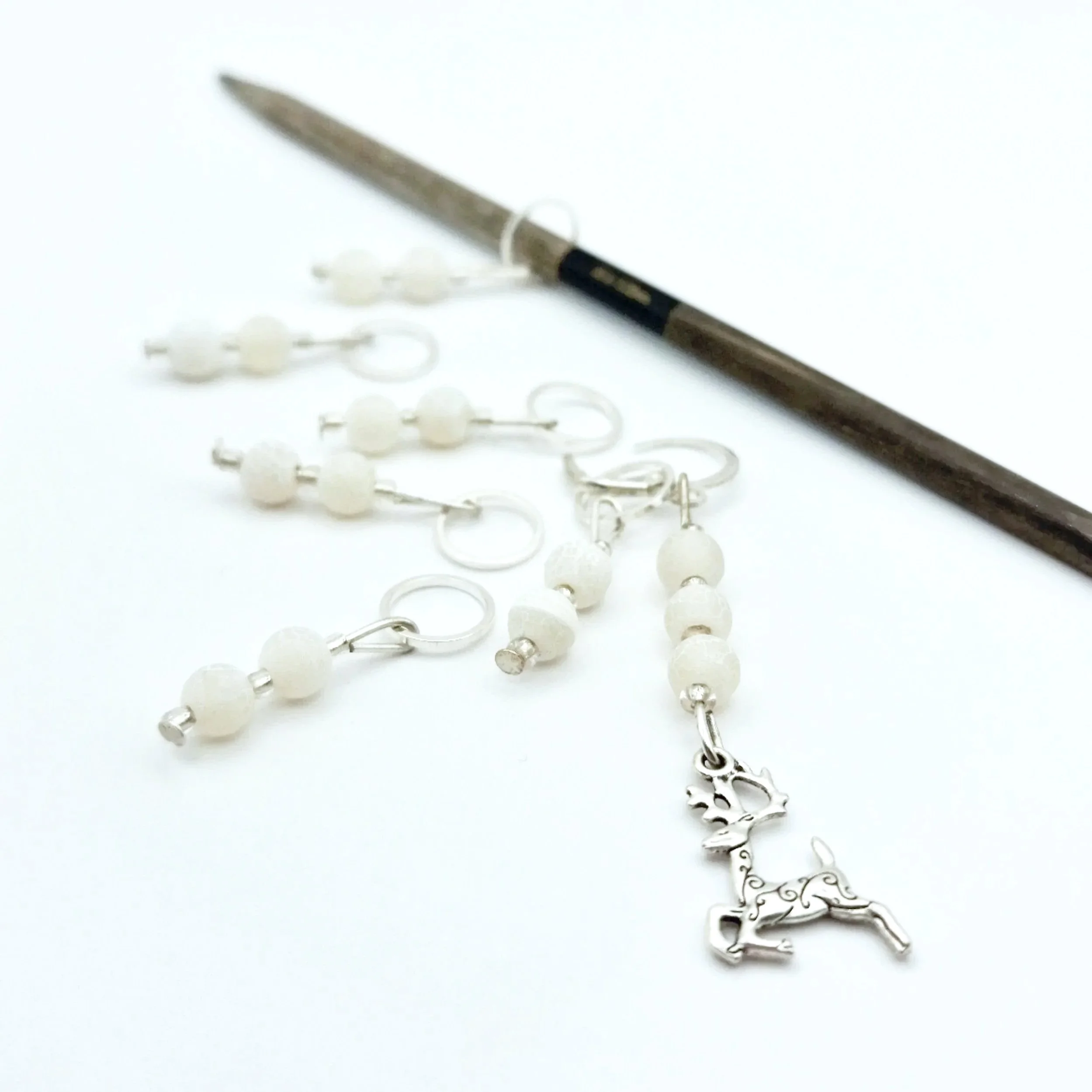 Dieses Set aus drei glasklaren Maschenmarkierern erinnert an gefrorene Tropfen am frühen Morgen – schlicht, aber mit einem feinen Glanz, der erst im Licht seine ganze Wirkung entfaltet.